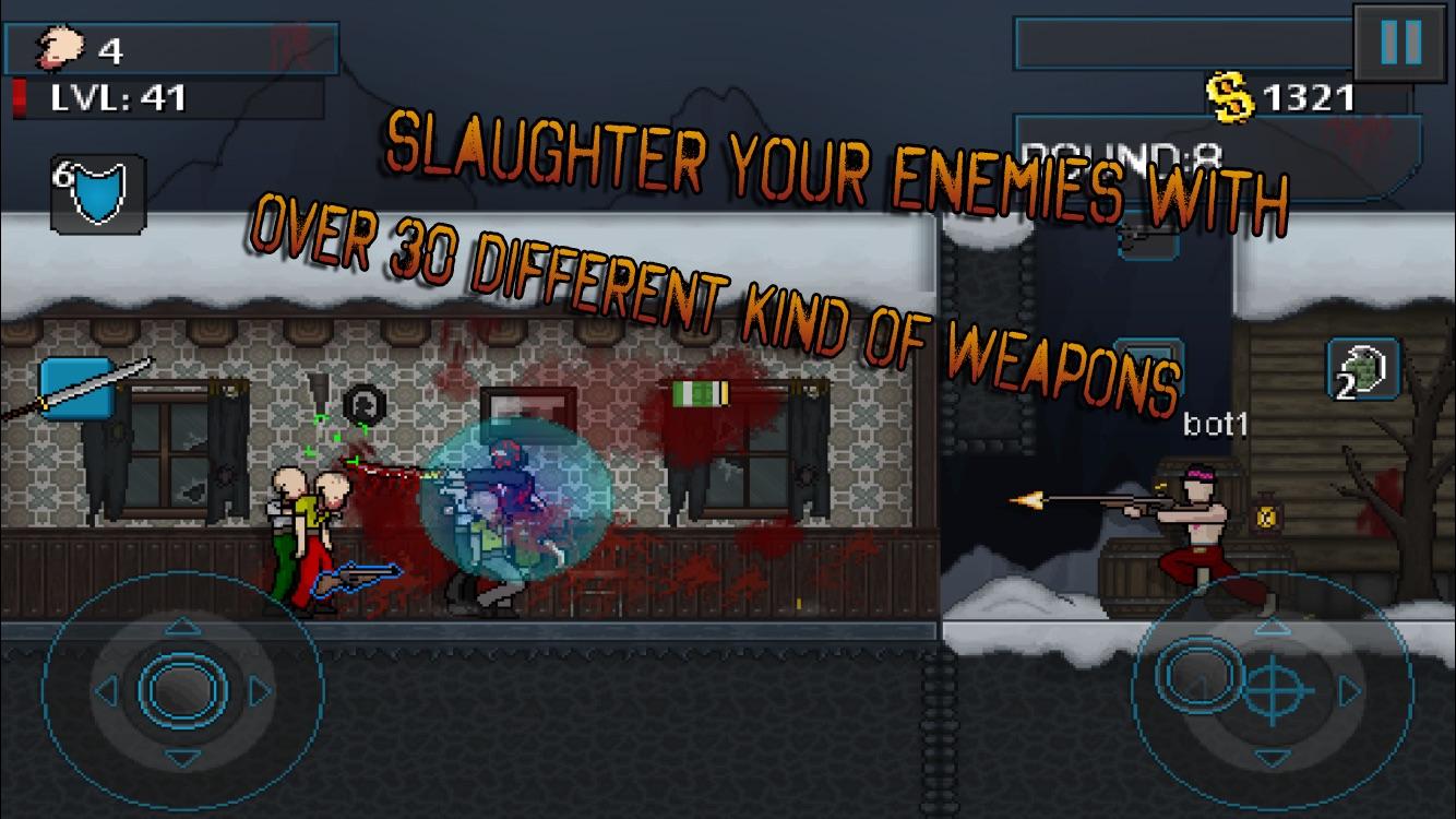 "The triumphant return of a fan favorite sidescroller, ZKW-Reborn stands on the shoulders of its predecessor to achieve even greater heights of awesomeness." -Super Game Droid http://www.supergamedroid.com/2014/10/07/beloved-horde-shooter-zombie-kill-of-the-week-returns-to-android/ *NOTE!* If you are having problems with activating full version / double points, please update to 1.1.3+ ! This will fix the IAP problem (you may need to re-activate your purchases!) Alright! It is time to start screaming! ZKW-Reborn is here! If you loved the old Zombie Kill of the Week, you are going to wet your pants the first time you play ZKW-Reborn! ZKW is an 2D sidescroller shoot 'em up, with beautiful pixel graphics, and original metal music by Roland La Goy. Your job is to survive as long as possible in the middle of the zombie apocalypse. As you play, you will gain XP, and level up to get more maps, new weapons, new clothing, weapon customization, bots to help you out and a-lot of other cool stuff! In game, you will also find a magic fridge, that can give you an random weapon, or disappear when opened! MAIN FEATURES: -Online multiplayer (Requires full version!) -Original sound tracks composed by Roland La Goy -Kill zombies with a very wide arsenal of weapons, including: Chainsaw, RPG, D.O.M., katana and many others! -Daily missions -Full controller support (Press START when you are at the main menu!) -Online highscores -5 never before seen maps -Weapon customization -Player customization -Skills, trophies, perks, blood and gore! ZKW-Reborn will be developed actively by Still Running, and we will keep the updates coming with new features and maps etc! In case you would run into some bugs, please report them to us (email!), and we will try our very best to get them fixed! (If you are experiencing any lagg in the game, please also tell us what device are you using to play ZKW-Reborn) ############################### !!!IMPORTANT!!! THIS GAME IS HEAVIER THAN IT LOOKS! ZKW-Reborn is NOT going to run on older devices, and you should have atleast 1GB of ram to enjoy it fully! If ZKW-Reborn crashes in the middle of the game, or right in the start, it's probably caused by your phone running out of memory. You can try to restart your phone, and run ZKW-Reborn again. ###############################