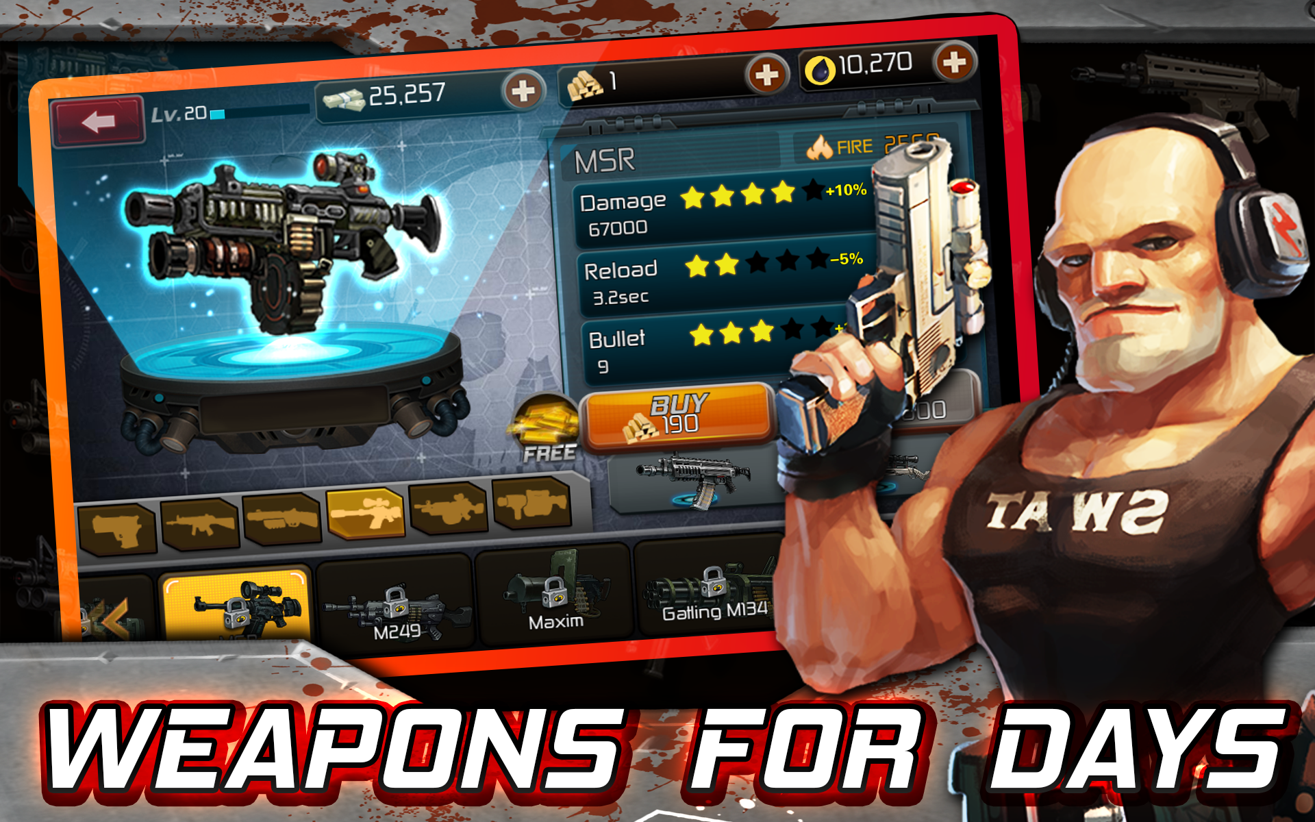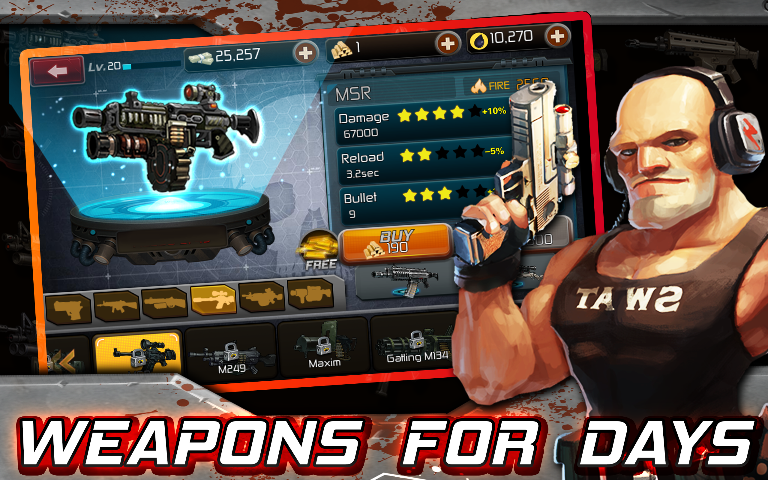 •Welcome to the Gun Show! With more guns to use beyond the human imagination, shredding through zombie flesh never gets old.