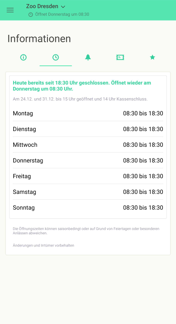 Einige der zoologischen Einrichtungen haben im Winter bspw. nur während Schulferien und/oder an Wochenenden geöffnet. Damit wir das auch korrekt anzeigen, gab es nun eine kleine Änderung, die hiermit an euch verteilt wird.